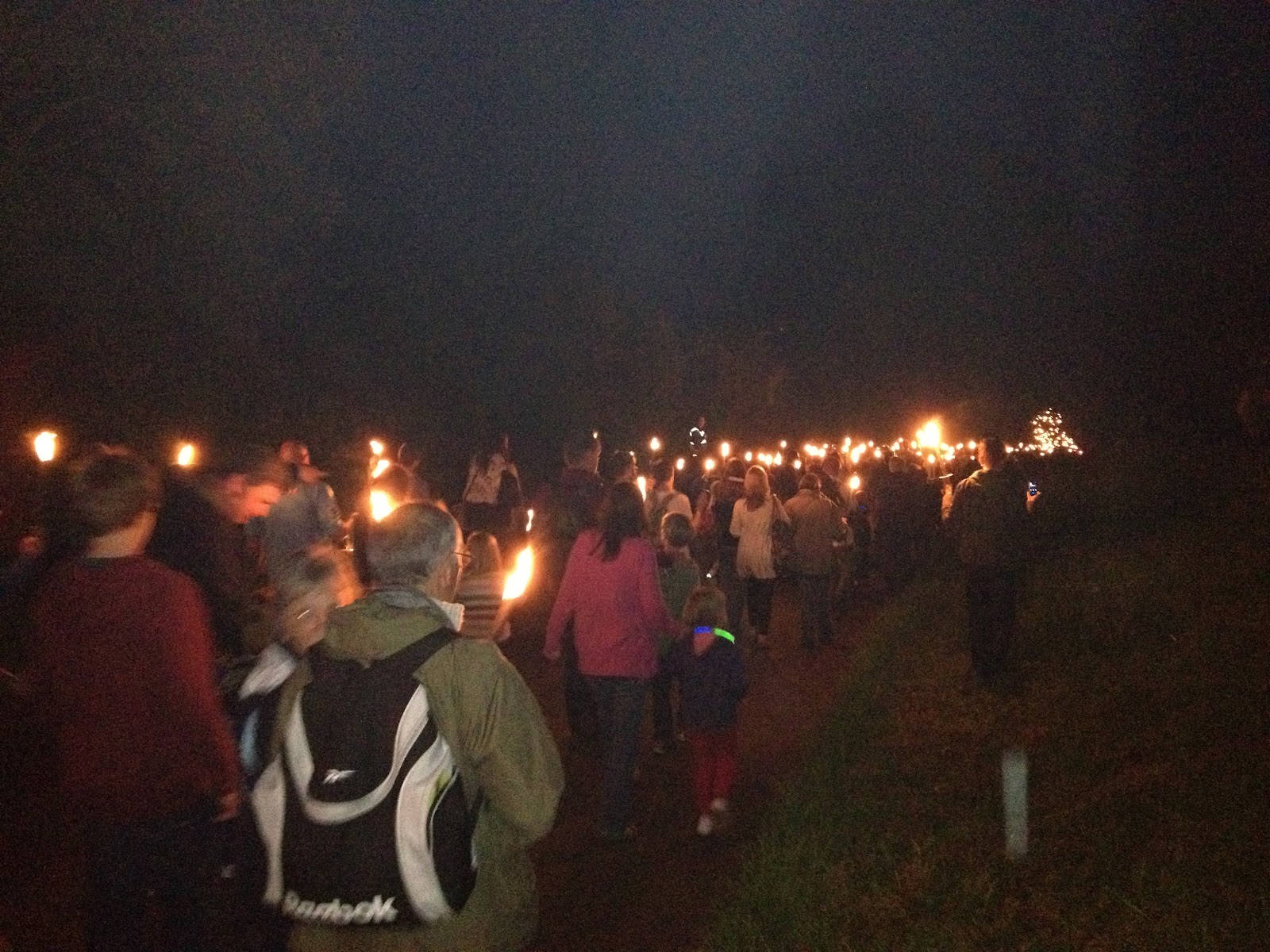 After the presentation of the awards - the finale; which is the lighting of a beacon and a brilliant display of fireworks. The last event of the night, and not to be missed, is leaving the games in a torchlit procession. You join the thousands of spectators carrying a flaming torch and walk from the hill down into Chipping Campden. A Corp of Drums and a Pipe Band lead the way. Its a wonderful sight and great to be part of this historic annual Cotswold event.
