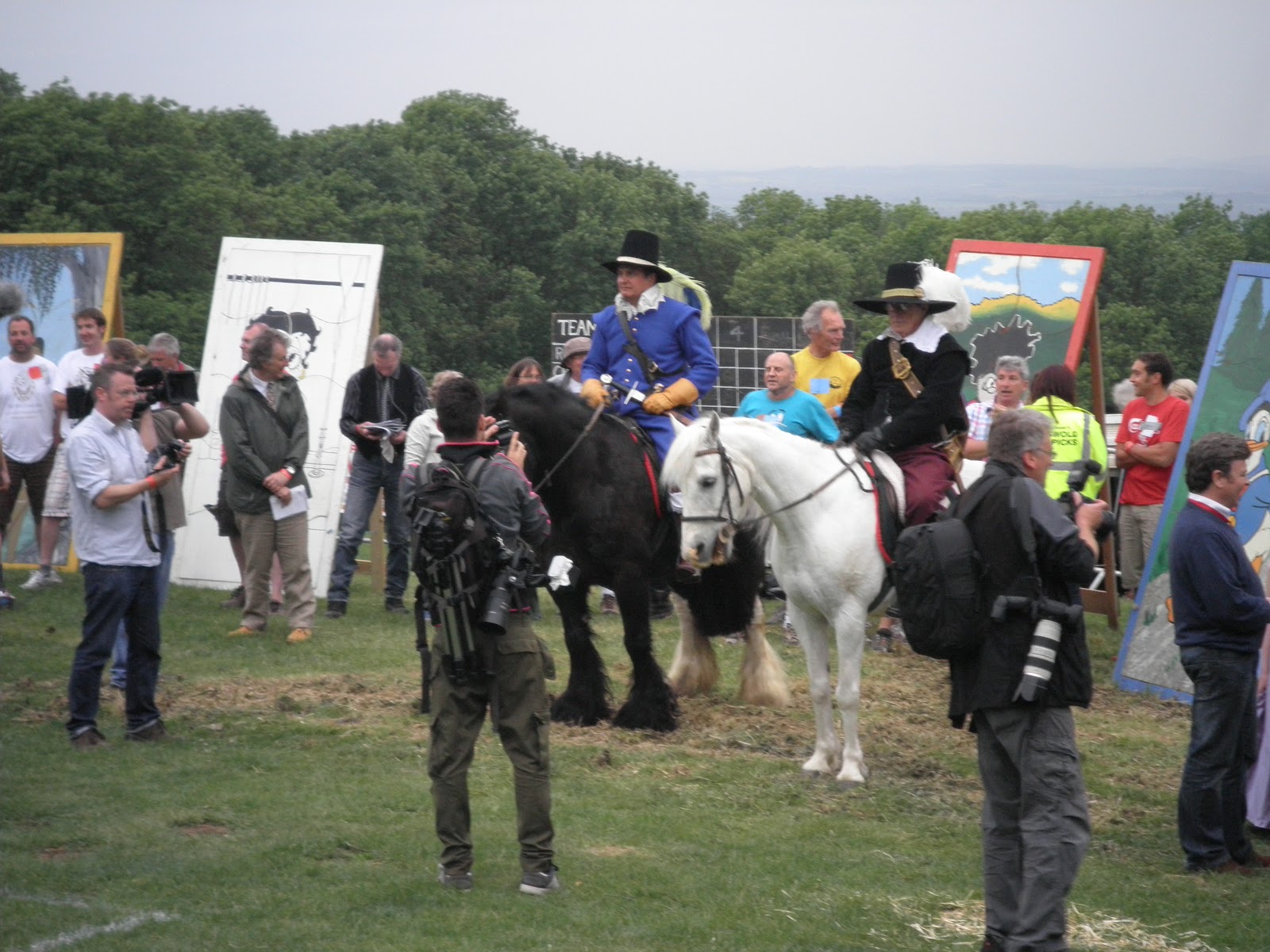 The official opening of the Cotswold Olimpick Games begins at 7.30 in the evening by someone taking the part of Robert Dover, who started the games back in 1612. He rides into the arena on a white horse, supposedly wearing some of King James 1 old clothes, accompanied by Endymion Porter and the Skuttlebrook Wake Queen and her attendants. The games begins with a speech from Robert Dover followed by the firing of a cannon to awake the spirit of the Games.